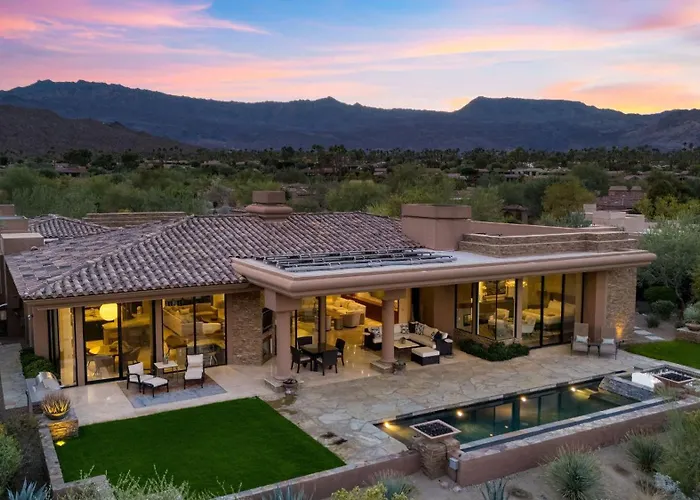 La villa Elegant Palm Desert Escape W Pool Casita Outdoor Lounge The Giraffe View House At The Reserve ofrece a los huéspedes activos acceso a un campo de golf y un club de golf, y se encuentra a 3 km de atracciones deportivas como el Centro Acuático de Palm Desert. Con un jacuzzi, la villa está a unos 10 minutos en coche del Bump and Grind.